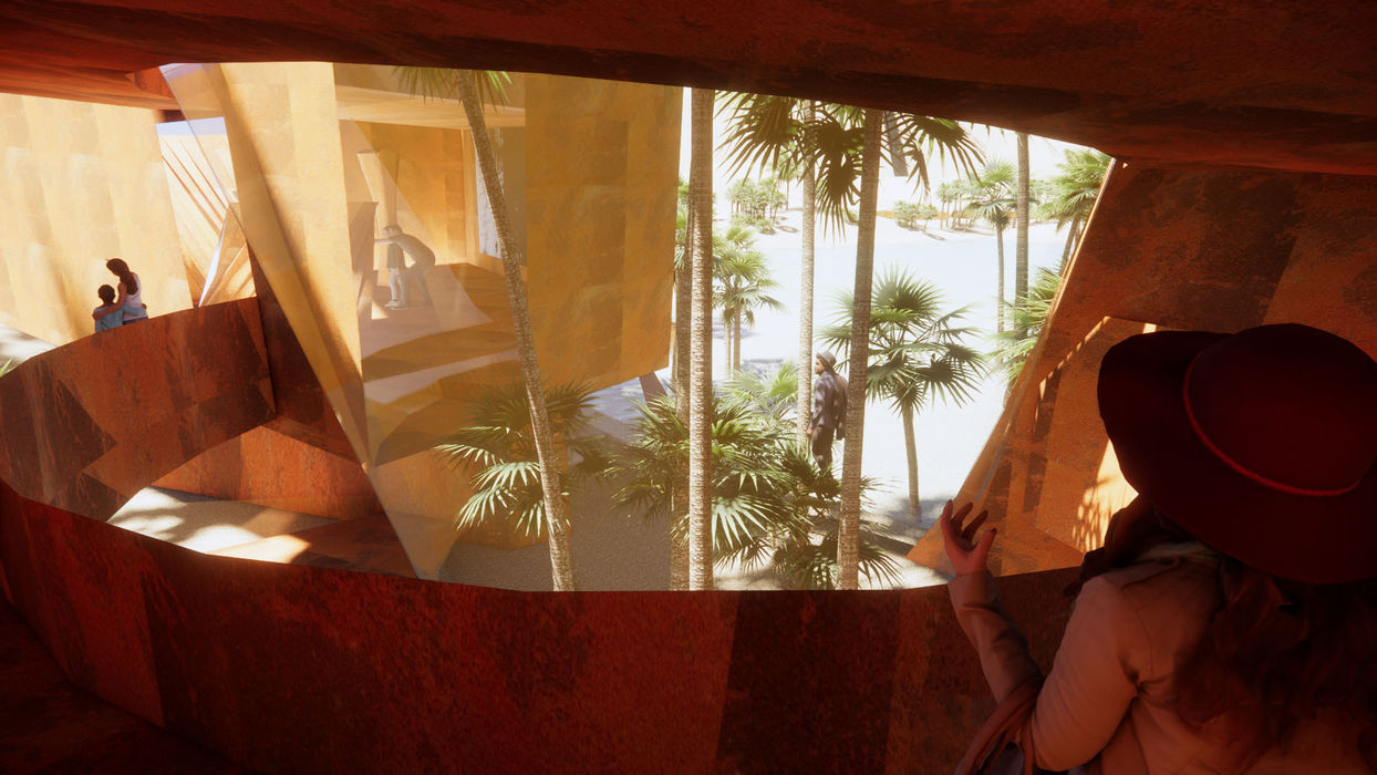 Entry for the Richard Serra Museum competition in San Francisco. This design for a museum honoring the work of the renowned artist Richard Serra was conceived around the idea of transforming the spatial experience of one of his iconic sculptures—specifically the Tilted Arc—into inhabitable architecture. The design includes a series of galleries, a lobby, a gift shop, and working studio space for visiting artists. The palette of materials is purposely kept to a minimum, echoing the restrained, industrial aesthetic of Serra's sculptures.